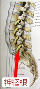 腰の神経の枝は左右に5ー6対あります。これを神経根といいます(図1)。椎間板ヘルニア等で臀部から足に痛みがある場合、多くはそのうちの1本または2本が圧迫されることが原因となっています。神経根造影は神経根に直接針を刺して、刺した神経根が現在の下肢の痛みの原因となっているかどうかを確定する検査です。また同時に痛み止めの薬と神経根の腫れ抑える薬(ステロイド剤)混ぜたものを直接神経に注入します。この注射でしばらくの間(数時間〜人によっては数週間)足の痛みがおさまることがあります。これが神経根ブロックです。
