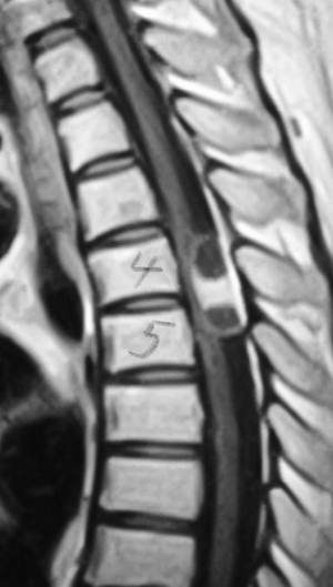胸椎部の脊髄腫瘍の手術前 |